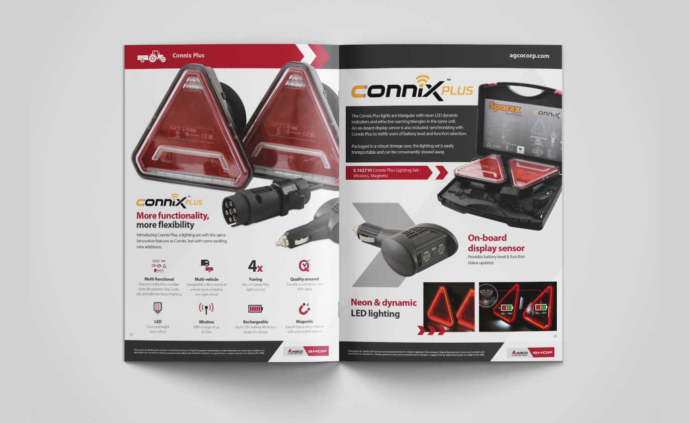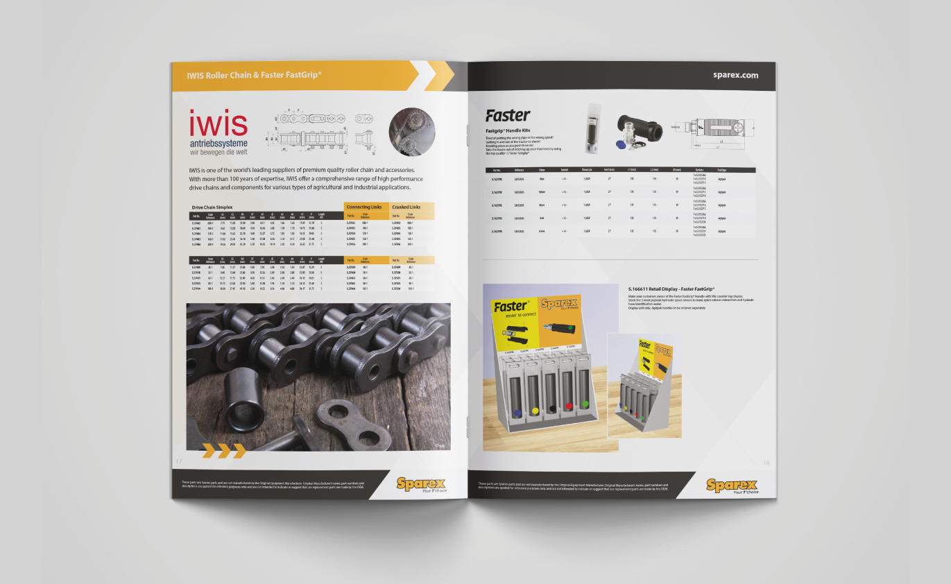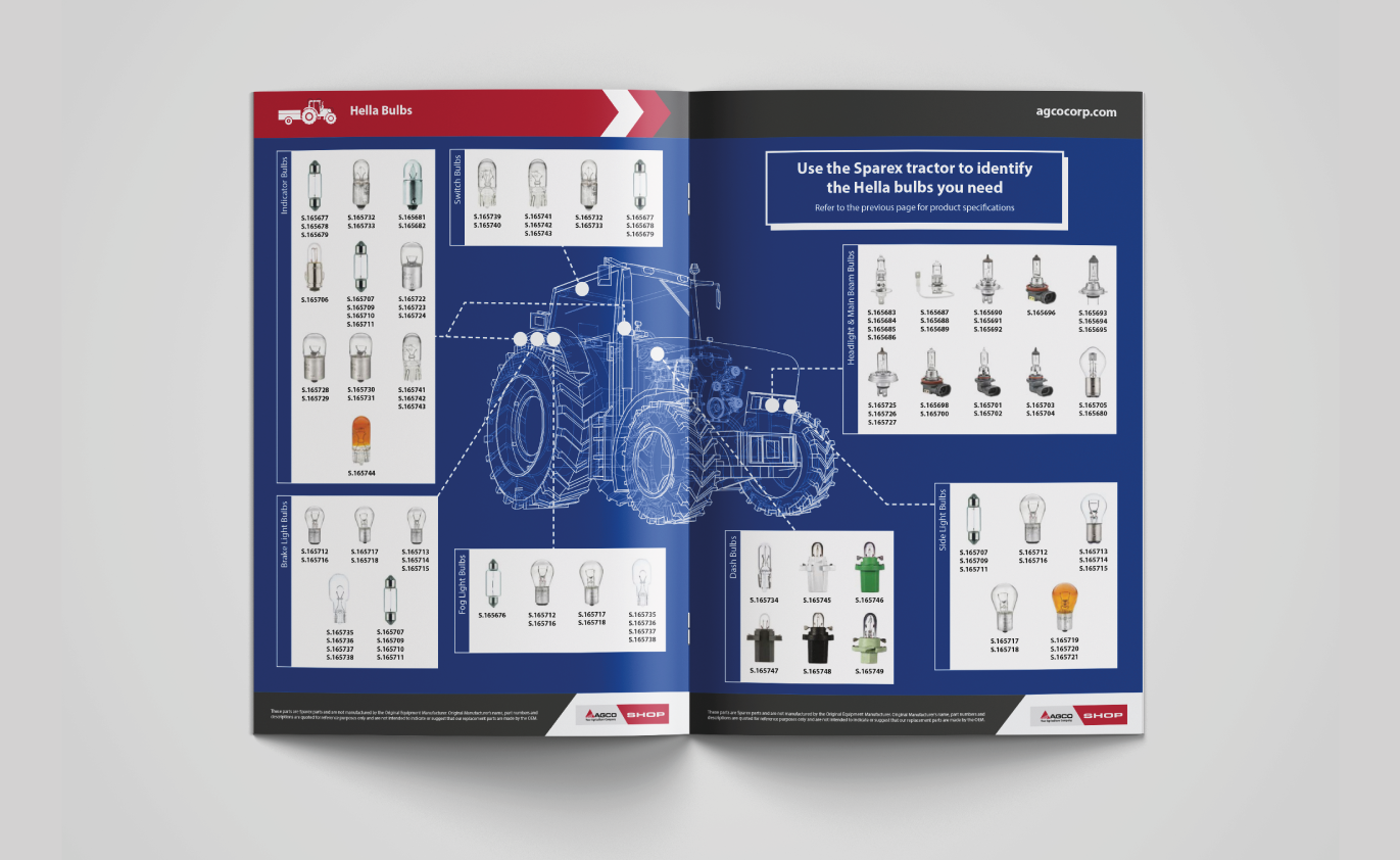 Three times a year Sparex produce both own branded and AGCO branded seasonal, B2B, 44+ page parts catalogues in 7 different languages. Below is a snippet of some of the catalogues I have worked on during my time in the business.